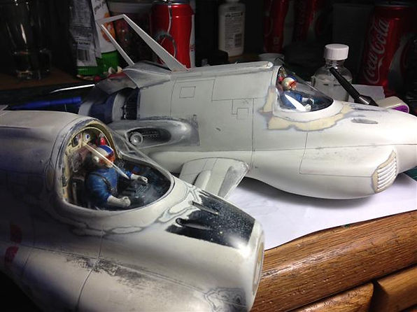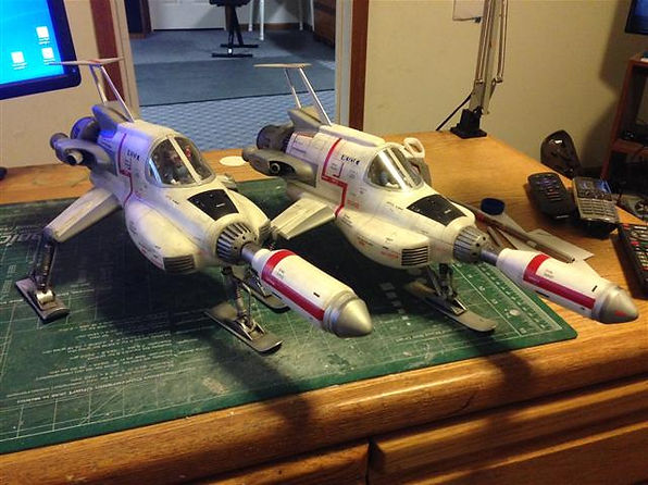 I added detail to the exposed engine on both models. The dorsal fin and engine cover had to be scratch built on this ship. Also the side engine mounts needed to be extended.
